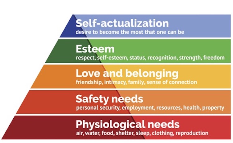 Abraham Maslow’s hierarchy of needs is a motivational theory in psychology comprising a five-tier model of human needs, often depicted as hierarchical levels within a pyramid. Needs lower down in the hierarchy must be satisfied before individuals can attend to needs higher up. The five levels of human needs are physiological, safety, love/belonging, esteem, and self-actualization.