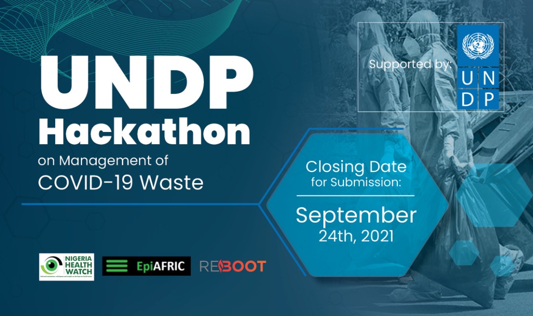 The United Nations Development Program (UNDP) in partnership with EpiAFRIC, Reboot and Nigeria Health Watch today announced an open call for submissions to the #Hack4COVIDWaste, a hackathon designed to develop solutions that will combat the issue of poor management and disposal of COVID-19 waste. The hackathon will be a hybrid in person-virtual event and will take place at Ventures Park in Abuja from October 15- 16 2021. Technology enthusiasts focused on social impact innovation are encouraged to apply online by 24 September 2021 using the application portal.