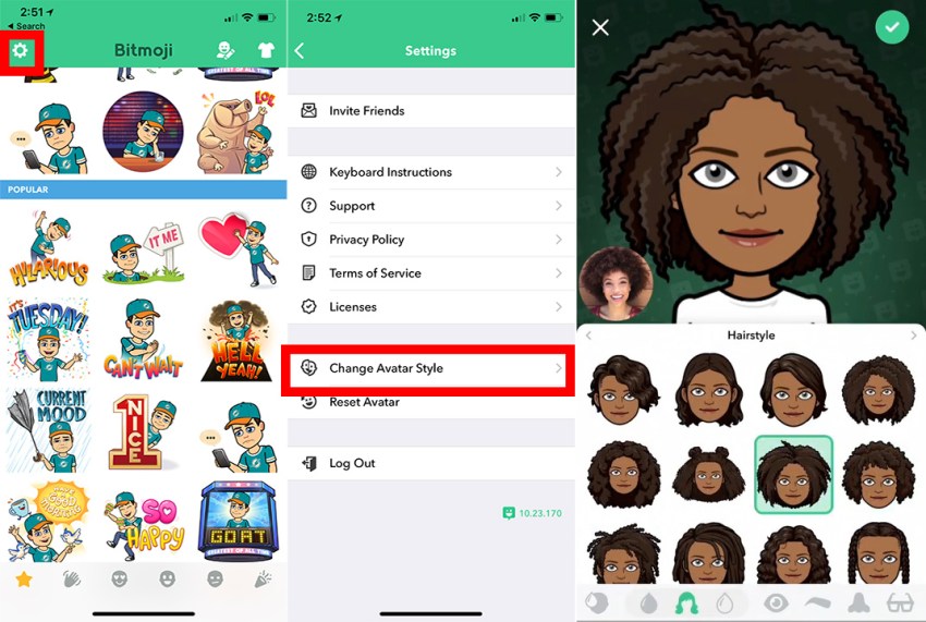 Make sure your Bitmoji app is updated and then follow these instructions to make the change. If you don’t see the option, you will need to check back later as it is not available for everyone at the same time.